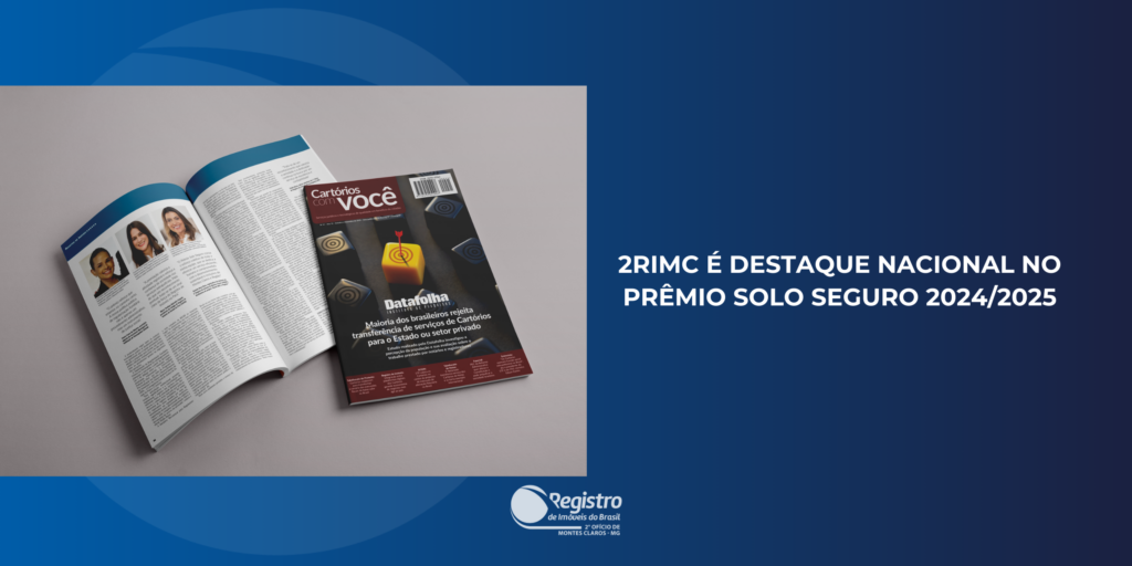 O 2º Registro de Imóveis de Montes Claros (2RIMC) foi destaque nacional na revista Cartórios com Você, publicação trimestral do Sindicato dos Notários e Registradores do Estado de São Paulo (Sinoreg-SP) e da Associação dos Notários e Registradores de São Paulo (Anoreg-SP), voltada a operadores do Direito e integrantes dos Poderes Judiciário, Legislativo e Executivo.